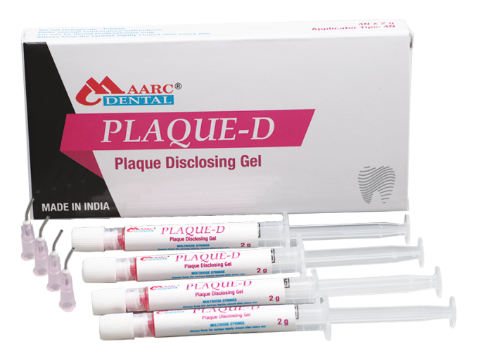 Plaque Disclosing Gel is made of special dye which stains plaque, As a result, one gets clear idea of brushing irregularities. Dentist can easily make patients understand in which area they have to focus more and which technique of brushing to the best way to educate patients about their brushing technique and teach them proper brushing. Dentist can give one syringe to patient to try the same at their home.